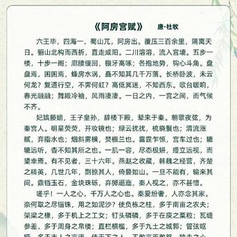 我的天啊!我国古代14篇经典必背名赋,你会背几首?这些中国古代的名赋是文学宝库中的瑰宝,其中许多作品至今仍被广泛传颂。比如《洛神赋》是曹植的代表作,以洛神的美丽形象和动人的爱情故事,展现了作者的文学才华。《滕王阁序》是王勃的代表作,以滕王阁的壮丽景色为背景,抒发了作者的豪情壮志。《岳阳楼记》是范仲淹的代表作,通过对岳阳楼的描写,表达了作者忧国忧民的情怀。《过秦论》西汉贾谊所作,通过批判秦朝暴政,强调仁政与德治的重要性,对后世统治者提出警示。《出师表》为三国诸葛亮所写,表达对国家忠诚及完成刘备遗愿的决心,文辞恳切,情感真挚,是古代散文典范。《师说》是唐代韩愈作品,阐述尊师重教的观念,文笔流畅,逻辑严谨,对教育思想产生深远影响。这些作品不仅在文学上具有重要价值,而且在思想上反映了中国古代文人的政治理念、忠诚精神和教育观念,是中国传统文化的宝贵财富。这些赋文不仅在文学上具有极高的成就,而且在思想上也反映了中国古代文人的精神追求和审美情趣。它们是中国古代文学宝库中的瑰宝,至今仍被广泛传颂和研究,各位友友,你们能背过几篇?